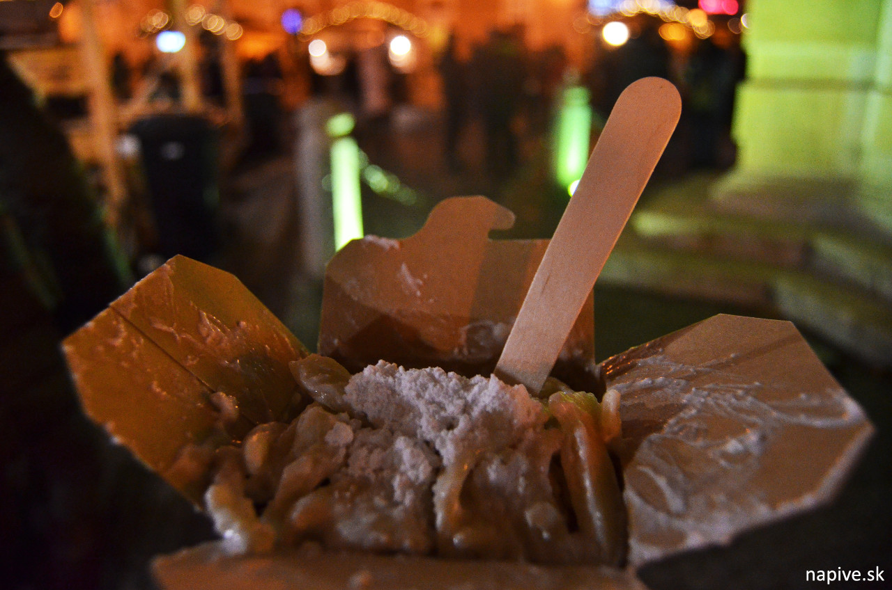 Trhance jak párance. Tieto pojazdné „slíže“ možno poznáte. Ak nie, tak odporúčam. Z nejakého dôvodu práve pri nich stál obrovský rad, najväčší na trhoch. Poctivo som si ho vystál, reku s čím ma prekvapia. Medzi makovými, strúhankovými a neviem ešte akými slížami som vyvolil tvaroh. Moja obľúbená kombinácia. Ale hm. Chlapík tvaroh nemal pomiešaný s cukrom – len mi tak hodil lyžičku do stredu a ešte som dostal jednu navrch. Slabina týchto skvelých párancov je tá fastoodová vysoká nádoba z papiera – nedá sa v tom nič pomiešať. Takže som mal miestami extrémne sladké a miestami vôbec sladké slíže :P. Ale inak pozitíva recenzia. V maličkom stánku na kolieskach stáli 4 ľudia, vyzerali ako rodina, 3ja ručne nonstop trhali do hrnca a jeden predával. Ešte aj 80-ročnú babku zapriahli do roboty. Tiež za 4.50 eura.